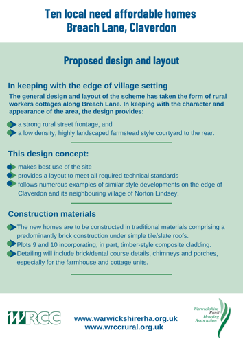 The homes, four for social rent and six for shared ownership, will be prioritised for people with a connection to the village, enabling local people to stay in, or return to, Claverdon.